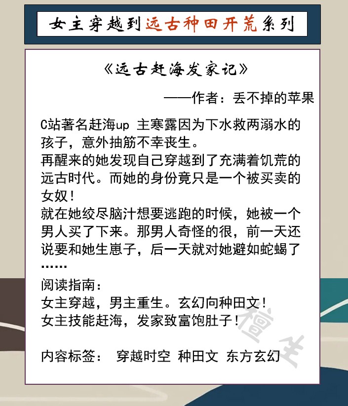 五本女主穿越到远古种田开荒系列文推荐,献给喜欢阅读的书友们!
