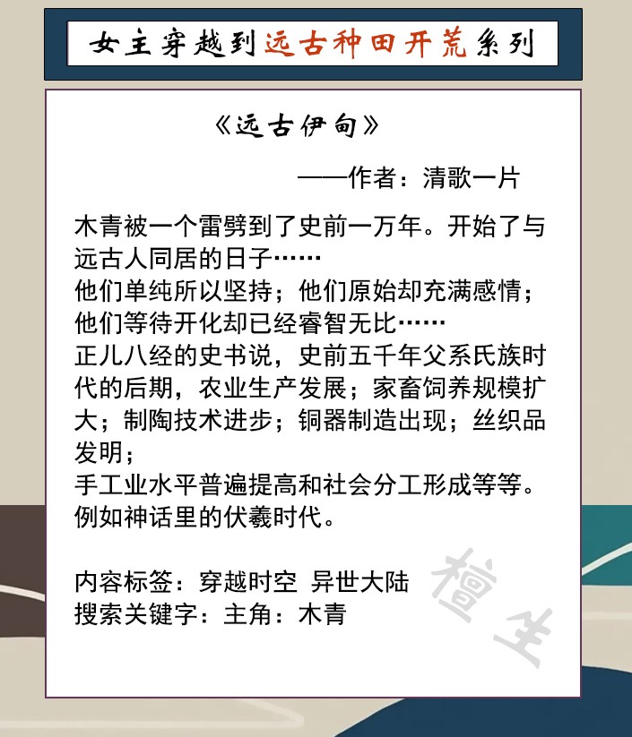 女主穿越到远古种田开荒系列文推荐:她重整部落创造史前灿烂文明