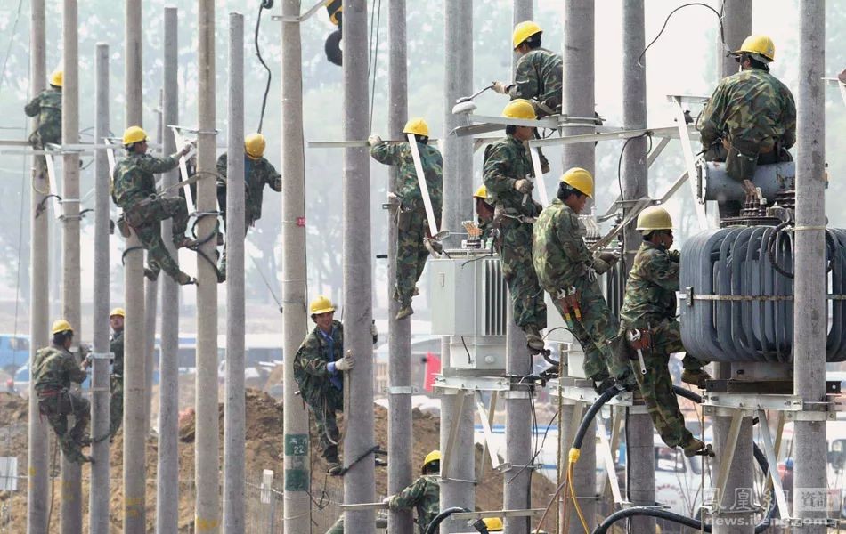 (2003年4月27日,北京,电力工人为即将建成的小汤山医院接通电路。Greg Baker/摄)