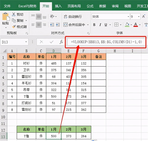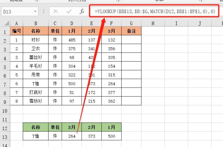 说明:公式中MATCH(D12,$B$1:$F$1,0)是查找D12单元格值在B1:F1单元格区域中的顺序,结果5,正是VLOOKUP函数的第三个参数。