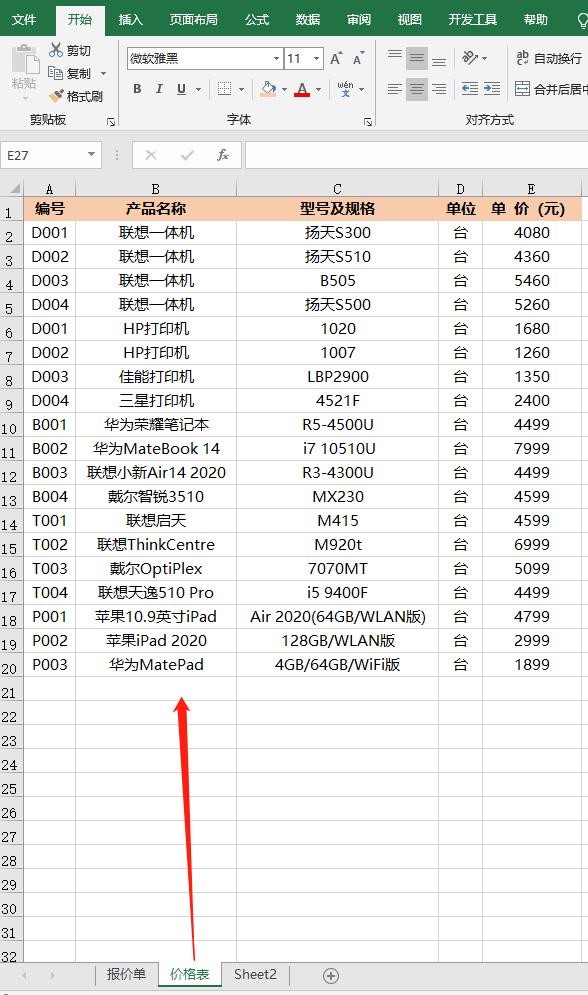 【产品名称】公式:=IFERROR(VLOOKUP(B10,价格表!A:E,2,0),"")