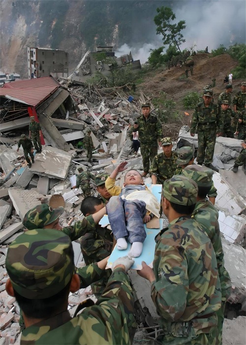 汶川特大地震发生后的第二天