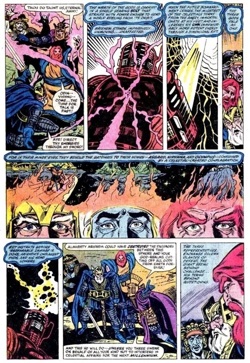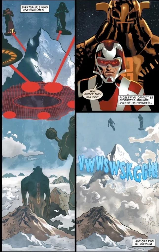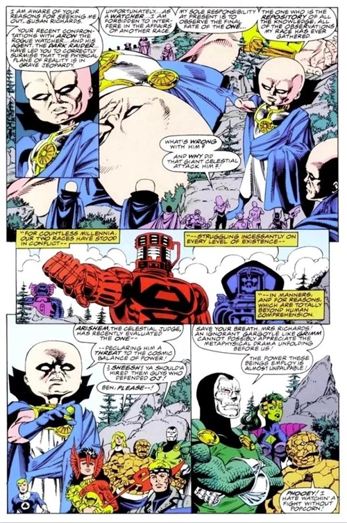 Arishem毫发无损地承受三名天父的联合攻击,其威力被描述足以把星球送出轨道。并且有能力永久封闭通往众神领域的维度入口。
