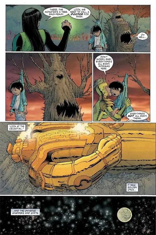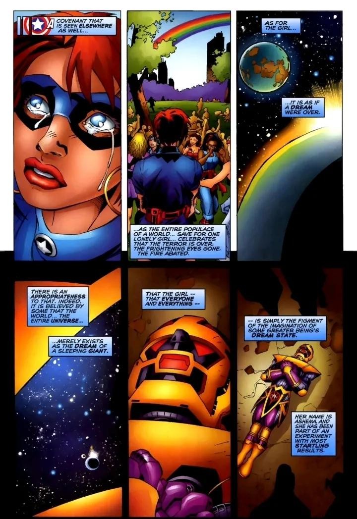 Ashema吸收整个宇宙(富兰克林理查兹创造的Counter Earth)进入体内,并陷入沉睡。
