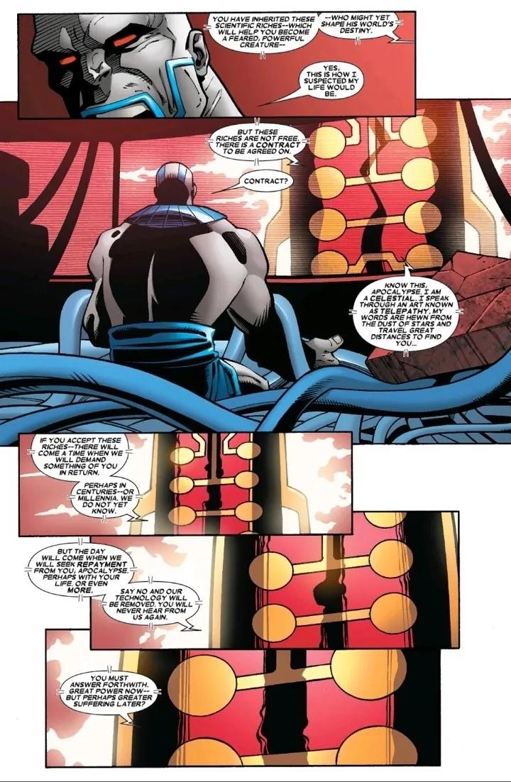简介:天神是一群神秘的外星巨人,他们的能量隐藏在物理外壳之下,全身覆盖着盔甲,大多数的身高达2000英尺。 在这形态下,他们也能利用各种器具和船舰来协助他们执行任务。 每一位天神皆拥有上限未知的巨大宇宙力量,足以摧毁整颗行星,或是恒星。 每一名天神是以他们的作用被定义,配备着各式力量来协助他们所扮演的角色,例如Exitar the Executioner的能力是破坏或重造,而Arishem the Judge的能力是审判种族是否值得生存。 天神对于其他种族的演化抱着高度兴趣,并已在无数物种身上进行实验,通常会对该世界进行四次访问,组成探索团体,称为〝主机〞 (the Host) 。 The Host是最著名的天神,由他们母舰上的One Above All管理。 天神拥有的完整的力量规模,故事中唯有过一些暗示。 每一位第四队的成员都足以承受集合了永恒族和阿斯嘉人力量的正面一击。 Arishem已展现过足够的力量,足以永久封闭通往众神领域的维度入口。 然而,天神并非无坚不摧;在第三队天神的期间,天神们曾经结合他们的神力杀死一名违反规矩的弟兄。 另一个对天神的力量的暗示是在第四队天神离开地球时,从人类的脑海和纪录中根除了他们在过去和现在的存在纪录,目前仅有永恒族、异变族、地球的三次元神明、以及极少数的人类意识到他们的存在与记得他们来访的本质。