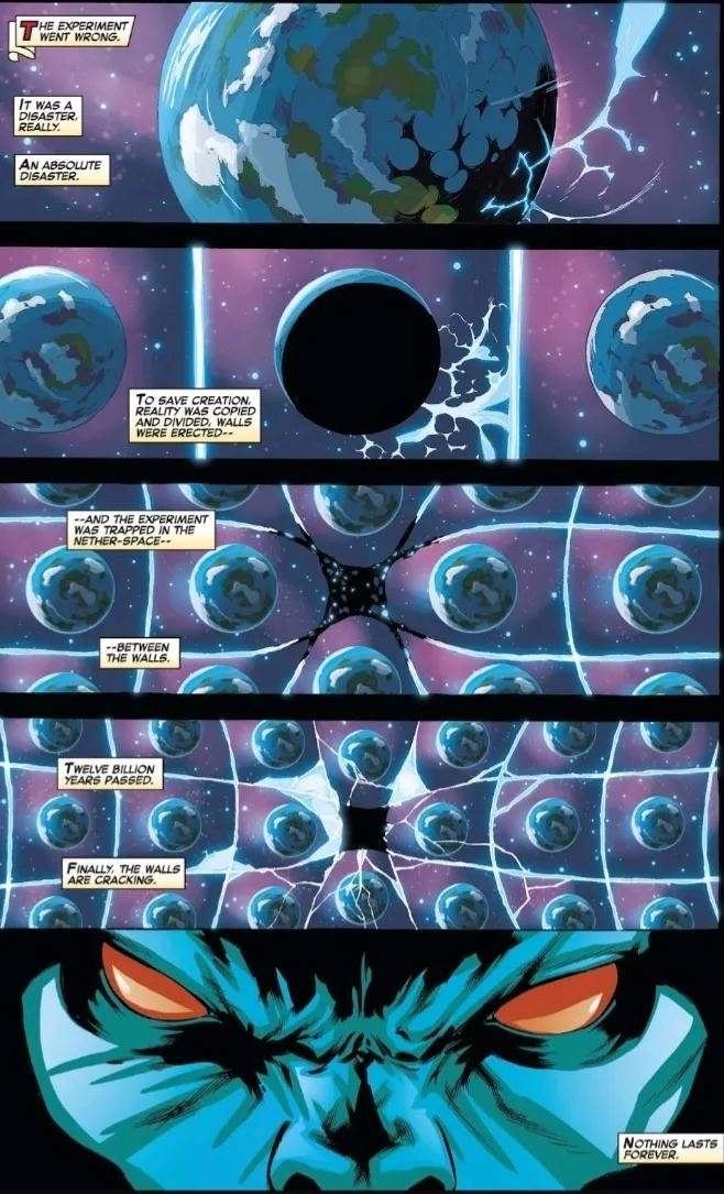 天神把宇宙分割,透过现实之壁來囚禁Exterminators。因此创造出多元宇宙 。