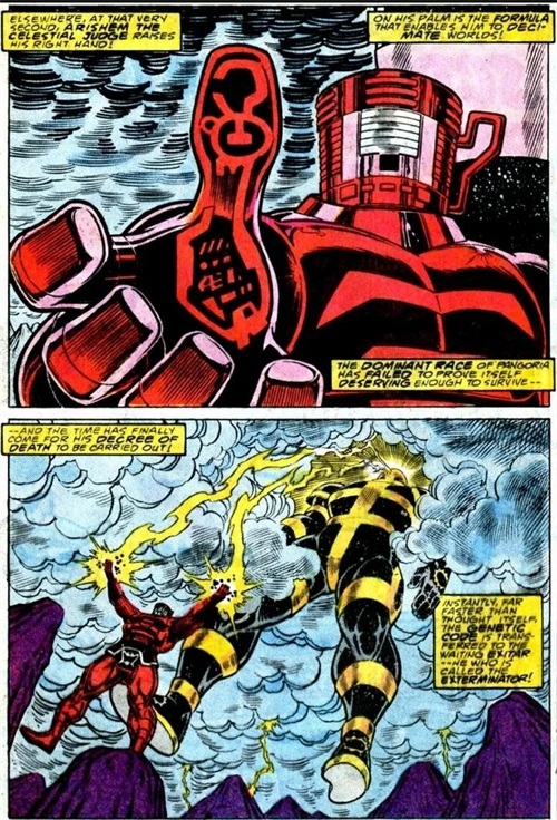 当Arishem宣判种族不值得生存,将召喚超巨型天神Exitar降临到该星球。