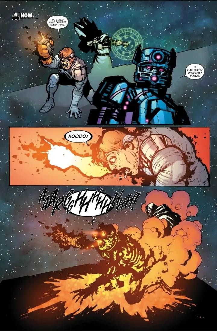 Earth-4280的疯狂天神轻易杀死两名持有无限手套的里德理查兹。
