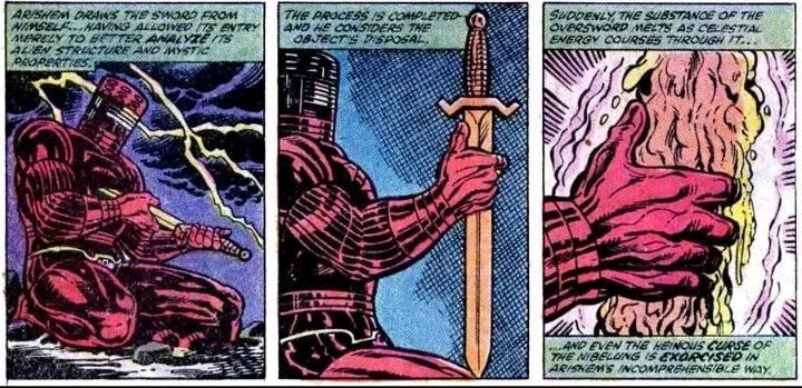 Arishem轻易熔毀奧丁之剑,其中容纳这尼贝龙根指环的诅咒。