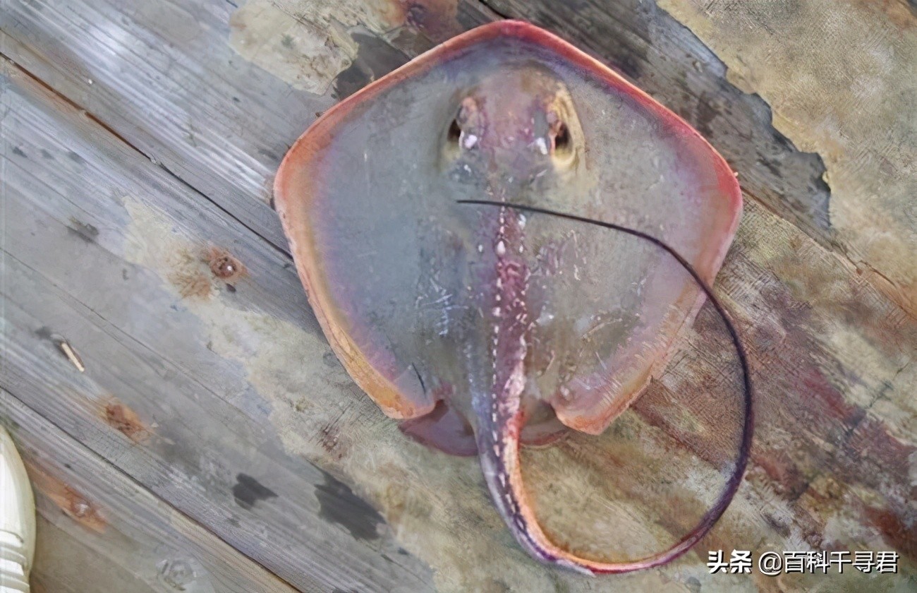 ▲魟尾巴细,大多数没有尾鳍或背鳍,有毒刺。
