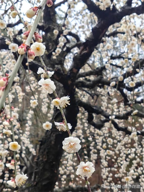 每年春节过后至3月,是龙梅的盛开之期,此时的普安禅寺,仿佛被粉色的云霞所笼罩,美轮美奂。“江南无所有,聊赠一枝春。”在江南的春日里,充满禅意的普安禅寺宛如一幅古韵悠然的画卷,而寺前的龙梅,便是这画卷中最为灵动的一笔。站在这千年古刹之前,我们为那一树树如垂柳般柔美的龙梅所惊叹。