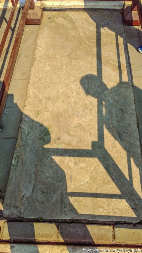 这块拜石大有名堂,是整块翡翠,有的地方已经露出了绿莹莹的翠色,据导游介绍,玉石的厚度最少在一米以上;清朝几个有名的皇帝康熙、乾隆等均在这块拜石上跪拜过。