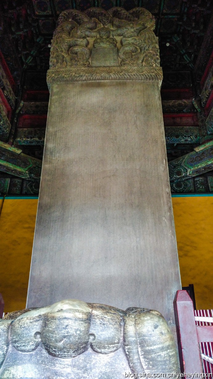 下面的石碑“神功圣德碑”是从河北运过来的整块石头凿成的。“神功圣德碑”的背面有一个很奇特的现象:每当阴雨天气,上面会隐隐约约显现出人的形状,其形好似一身材修颀、头拥高警、容貌俏丽、身着宽衣大袍、飘洒如仙的“靓女”。你越是仔细揣摩,这个人形就越加清晰。因此,古往今来不知引起多少文人墨客达官显贵们的兴致,因而引出许多传闻。甚至把它“神化”为清代的《留都(沈阳)十景》之一,做为盛京景物加以渲染,名曰“神碑幻影”。《陪都纪略》还有一首诗赞誉此景说:“古石成形瑞气全。胜似丹青巧手镌。两陵(昭陵、福陵)背后生神像,可入陪都志略篇。”(刘士英:《陪都志略》)