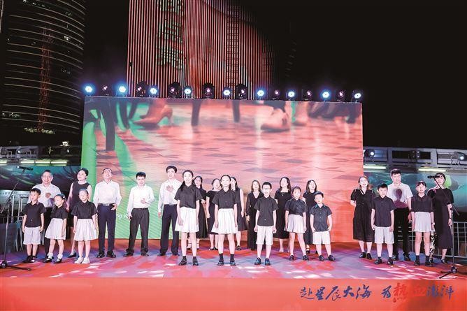 前不久,五缘湾天虹商场举行周年庆典,郑榕娟带着11岁的女儿和8岁的儿子,与其他亲子合唱团的成员一起,在商场中庭的台上唱了5首歌曲。