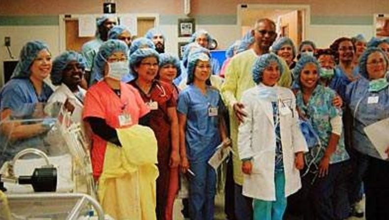 医生出来告诉丈夫,妻子顺利产下了七胞胎,除了两个孩子可能有些问题外,其余五个孩子都非常健康,伤口已经缝合好,一会儿会推出来到房间进行休息,可以不用担心了。