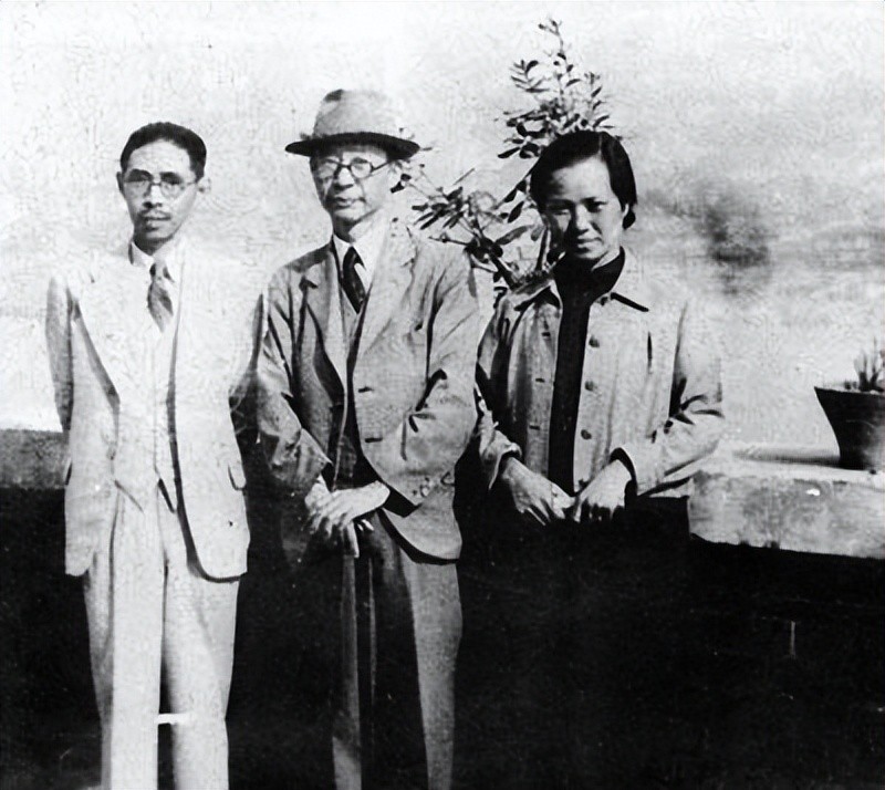 茅盾(左)与老舍(中)、于立群在重庆合影