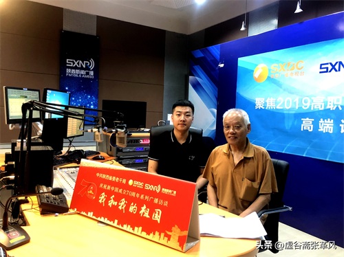 图为2019年,作者(右一)走进陕西广播电视台庆祝新中国成立70周年“我和我的祖国专题直播闻时留影。