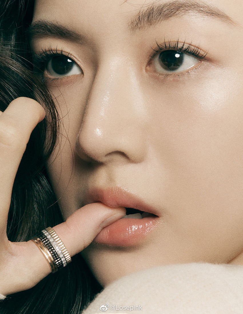 高允真很清楚自己的容貌特色,她属于淡颜系的,并不是适合特别浓重的妆容,所以几乎每次拍照,她都是选择非常清淡的妆容,营造一种裸妆的感觉。面对高清镜头的怼脸拍,她精致的五官和清透的皮肤状态都能完美hold住。有些照片中她的某些角度有点神似全智贤。