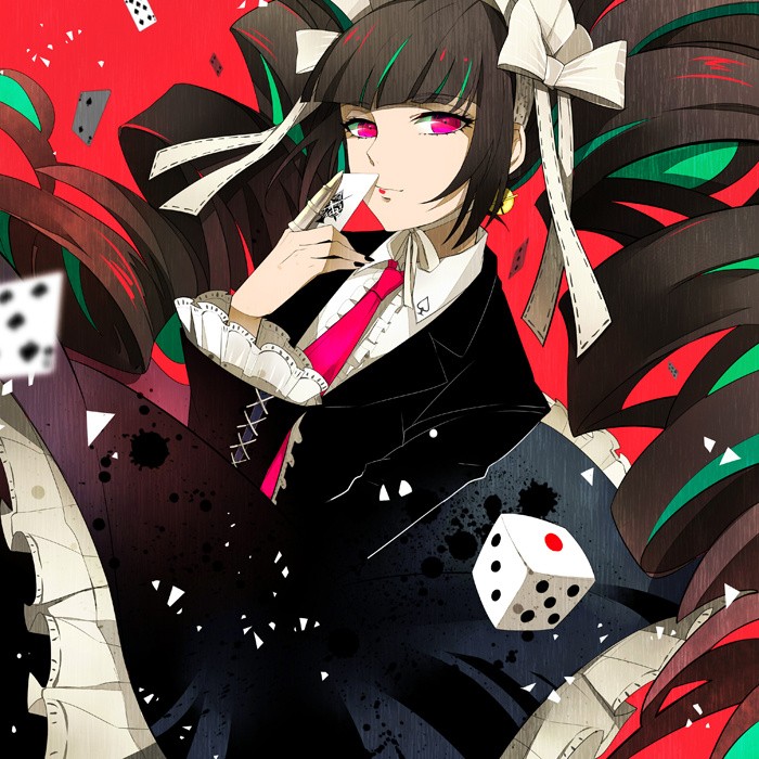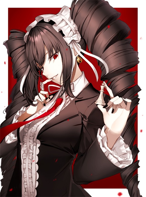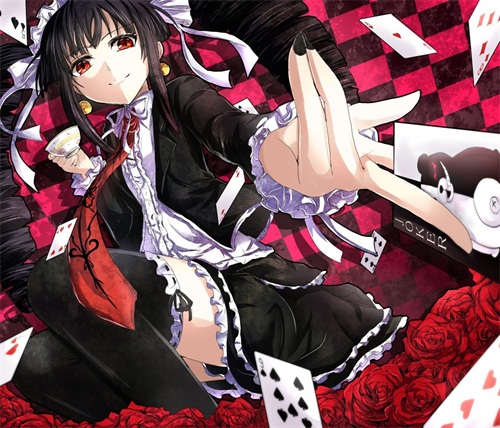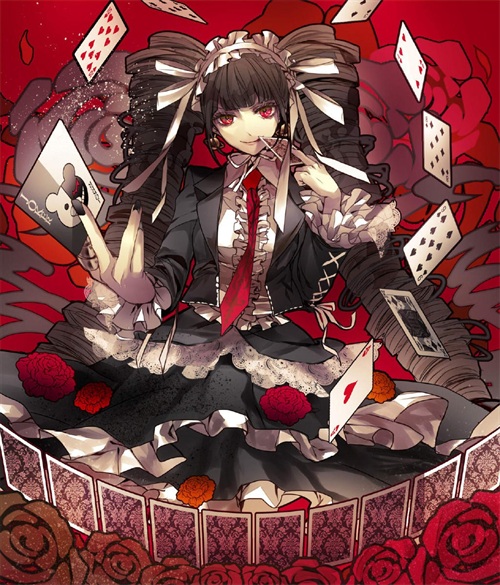 萌点:双螺旋、哥特萝莉装、美甲、赌徒、腹黑、齐刘海、白色皮肤、黑色过膝袜、高跟鞋、领带、S属性、丝带、毒舌、黑色蕾丝胖次