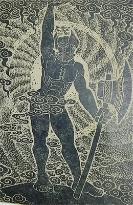 盘古万分恼火,他在黑暗中摸索,突然,摸到了一柄大板斧。盘古站立起来,双手紧握大板斧,带着滿腔的抑郁和愤怒用力挥去,一声巨响!大蛋破裂了。其中一些轻而清的东西,缓缓上升,形成了天;其中那些重而浊的东西,徐徐下沉,形成了地。混沌的世界,就这样让盘古用大斧划成了天地。