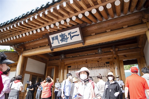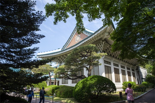 5月12日,在韩国首尔,游客参观青瓦台官邸。 新华社记者 王益亮 摄