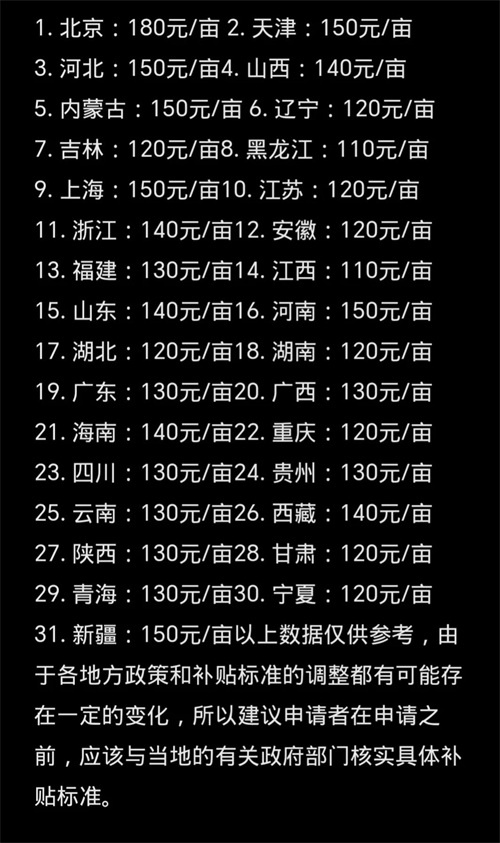 2. 黑龙江省:作为北方农田的主力军之一,黑龙江省在粮食生产中占据重要地位。由于气候条件适宜,农田面积广阔,这里的农民将享受到丰厚的补贴政策。