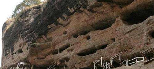 其次,绳索说,因为学者们曾经在桩洞旁找到一个用来踩脚的地方,也就是可能说,棺木是用绳索从山腰吊上来的,第三种,上攀说,即接近水面的棺木可通过人工攀登接力放置完成。