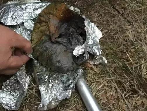 这是一个制作过程,可以灵活掌握。其实过去的叫花鸡就是包荷叶糊泥来烤。不过荷叶毕竟薄,容易进沙土。而且野外获得荷叶的可能性也小。所以要学会使用现成的材料,比如锡纸。