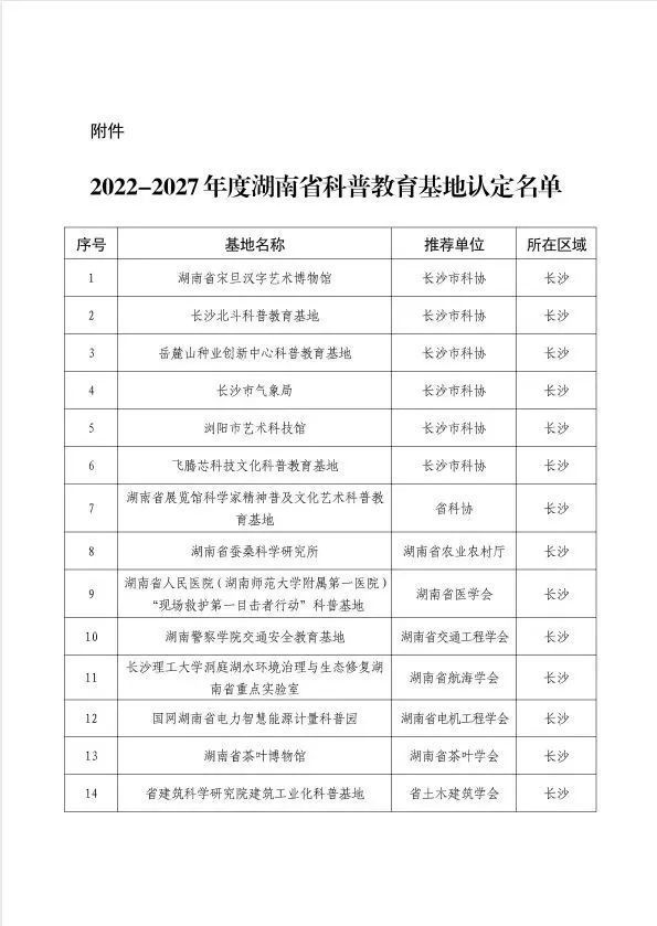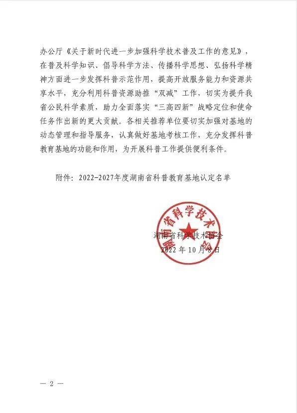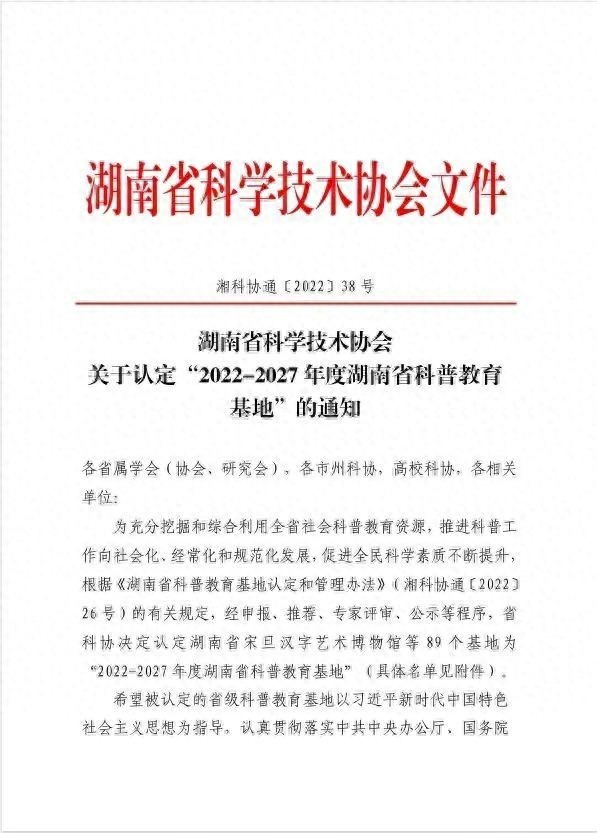 湖南省科普教育基地称号