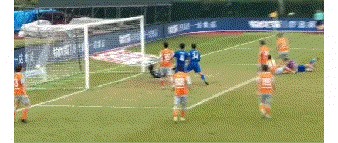 第10分钟,前场左侧,钱杰给开出一脚非常飘逸的任意球至门前,金洋洋从人群中杀入高高跃起头球攻门将球砸入了球门的左下角,对方门将明显慢了一拍,虽然方向判断正确并做出了扑救动作,但并没有摸到皮球,只能眼睁睁看着皮球飞入自家球网。上海申花队以闪电速度轰开了深圳队的大门。