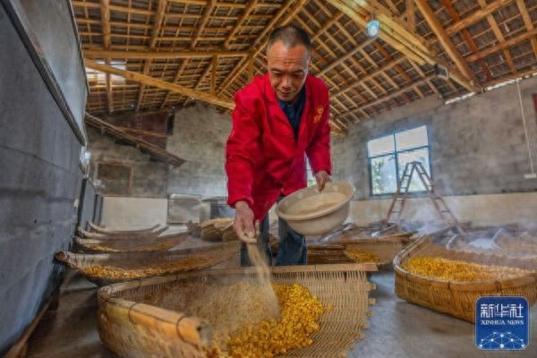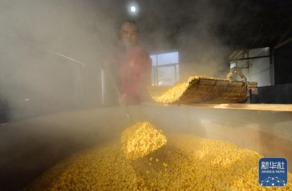 寒冬腊月,湖北省恩施土家族苗族自治州宣恩县的酒企和酿酒作坊进入酿造包谷酒的忙碌时节。酿酒师以玉米为原材料,采用非遗工艺酿造的高度白酒,当地称为包谷酒。包谷酒是当地群众过年过节、走亲访友、朋友聚会时饮用的传统饮品,也是一种特色旅游商品。