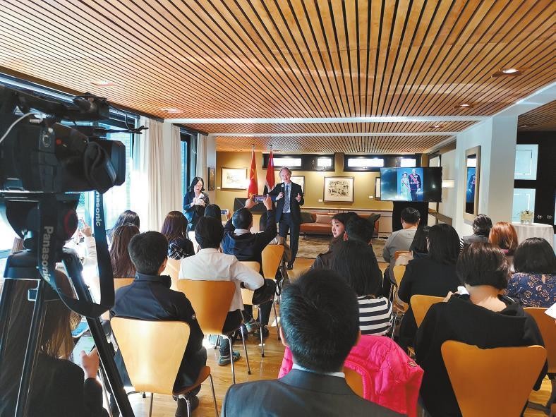 在发布会上,挪威驻华大使裴凯儒介绍了国王夫妇访华行程及亮点,挪威驻华使馆商务参赞索尼介绍了挪威经济发展现状,并提到此次访华随国王同行的商贸团人数创下纪录,有很多合作新机遇,能源是其中一个重要亮点。