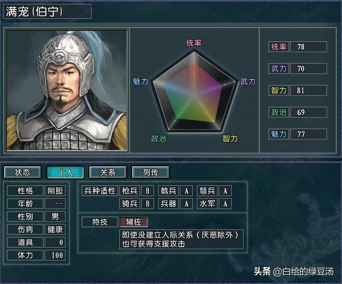 而曹魏势力在开局就拥有了威风、辅佐这个组合,不管是初始阶段张辽作为主将携带满宠,还是游戏的中后期两人均作为副将,都是玩家不舍得抛弃的组合。