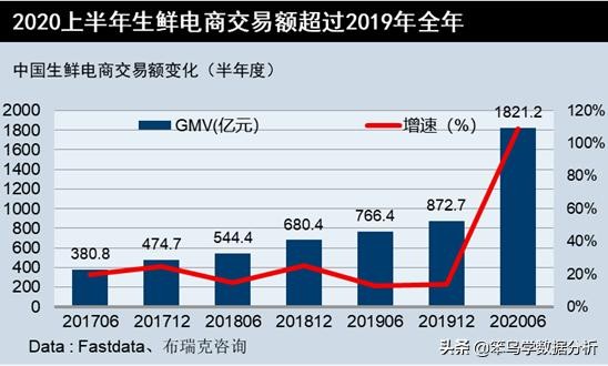 而且,仅2020上半年生鲜电商的交易额就超过了2019年全年,如下图所示。
