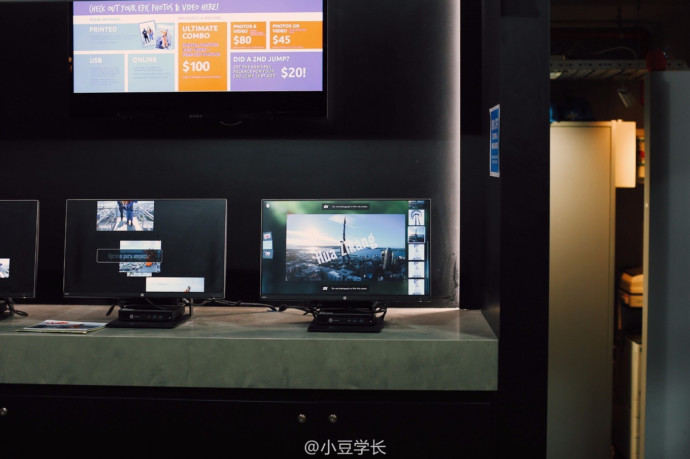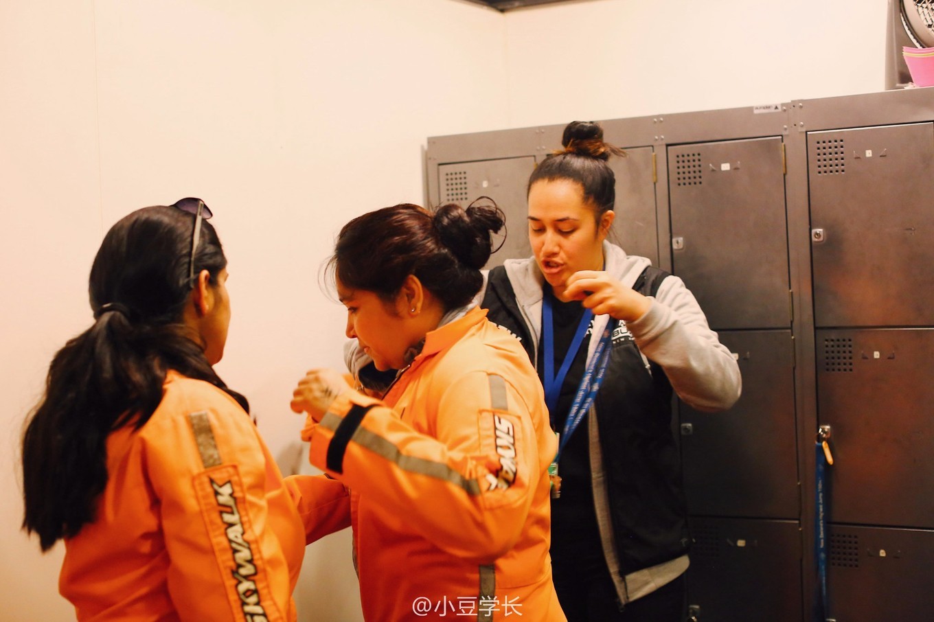 售票处有一个巨大的显示器,正在播放别人跳下来的视频,从旁人的角度来看这个项目,确实挺害怕的,一度犹豫了一下到底要不要上去,买票结束后,会有对接人人来给你1对1衣服的安全检查,外套衣服是需要脱下的,换上一个像超人的服装,口袋里所有东西,手上的手表等小物件都要放在储物柜里,再用电子仪器检查一下,确保安全第一。