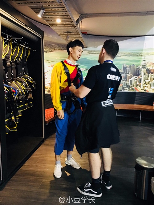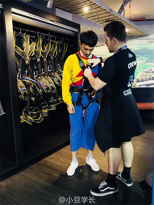 起跳前的准备工作做了许久,最后上电梯到达了最高处,迎接我的是一个帅气的小胖子,每天都要送下去许多人,也不差我这样一个了。和我说话的时候一直很有激情,在跳前也给了我很多的鼓励。