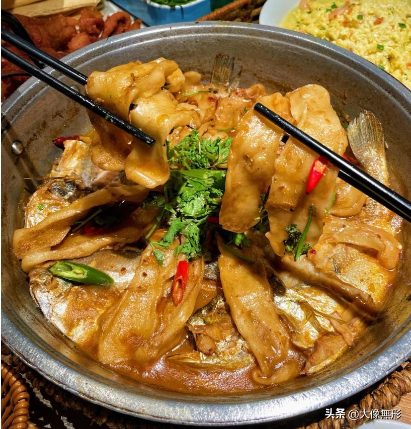 一锅杂鱼炖出胶质,玉米饼蘸汤才是精髓!认准石臼市场旁的“老船长锅贴”,三代传人用铁锅柴火灶。