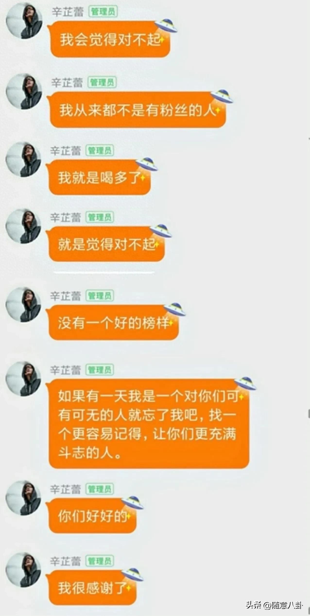 原因在于她突然出现在粉丝群中,发表了一些令人惊讶的言论,包括承认有粉丝想要离开她也是正常的,她并不觉得自己有什么值得崇拜的地方,只要能够真心实意地给粉丝带来好的引领,她就心满意足了。她还自嘲自己的脑子不好,每天跑七公里还是没有减肥,让她感到沮丧,甚至还调侃自己不想活了。这些言论自然引起了粉丝们的关注和讨论。