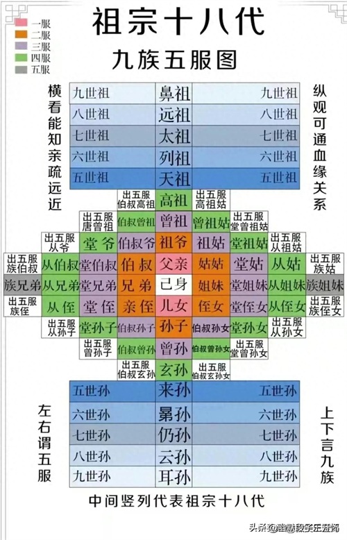 九族五服图、祖宗十八代,看完涨知识了,总结的太好了。