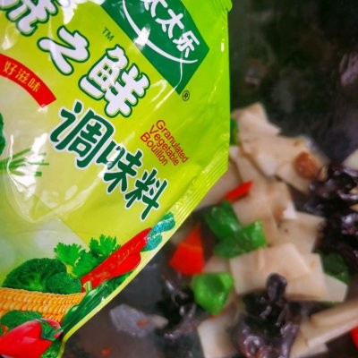 9、再来一点蔬之鲜,加入少许料酒,最后根据口感再放盐,翻炒几下即可出锅。