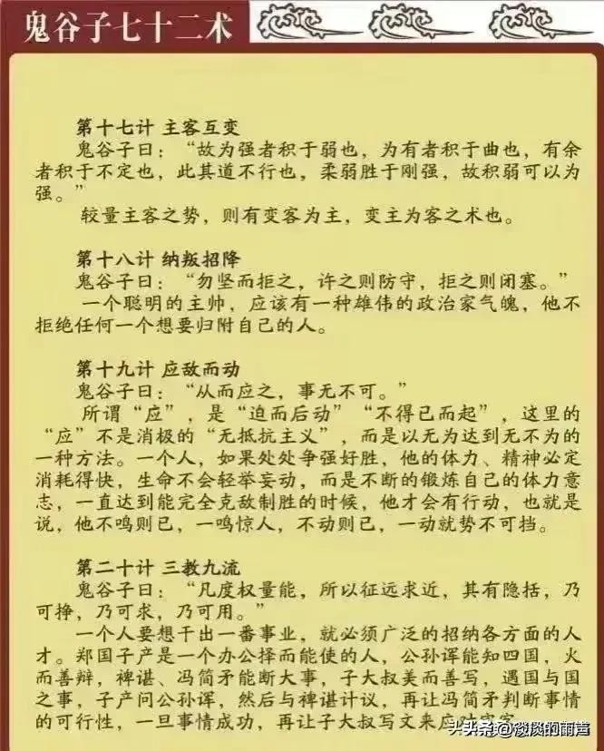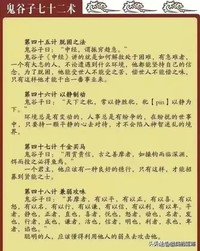 鬼谷子七十二术详解,有人整理出来了,收藏起来吧,仅供参考