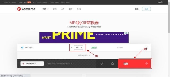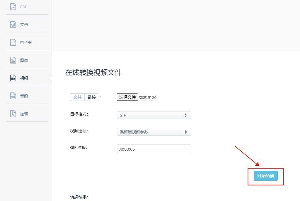 3、上传成功后的视频文件右侧有一个下拉框,选择【GIF】,完成后点击右下角的【转换】等待处理完成即可,转换后的GIF文件发送给好友就可以保存为表情包啦。