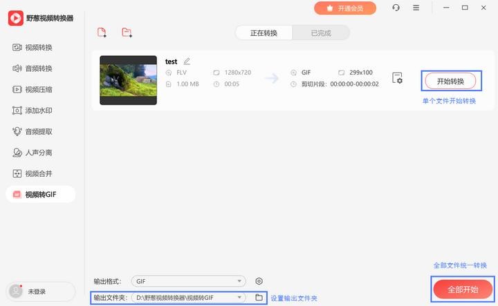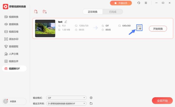 4、完成后点击界面右下角的【开始转换】,等待处理完成即可,转换后的GIF文件发送给好友就可以保存为表情包啦。