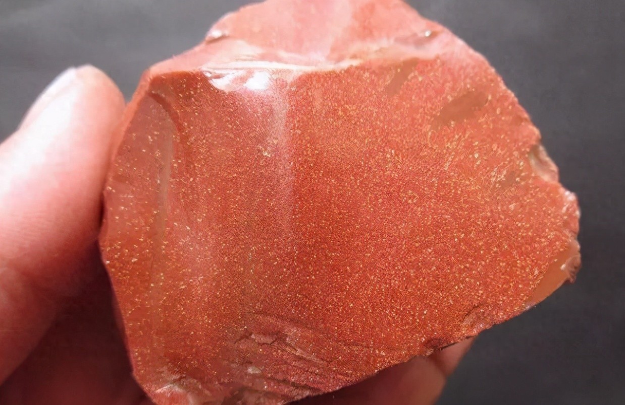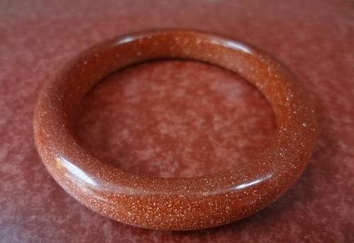 很像砂金石或东陵石的一种人工仿制料。将铜粉加入到棕红色或蓝绿色的玻璃里面烧制成。在玻璃亮光底板上闪烁着很多小点的眼。又称金星玉、砂金玻璃。