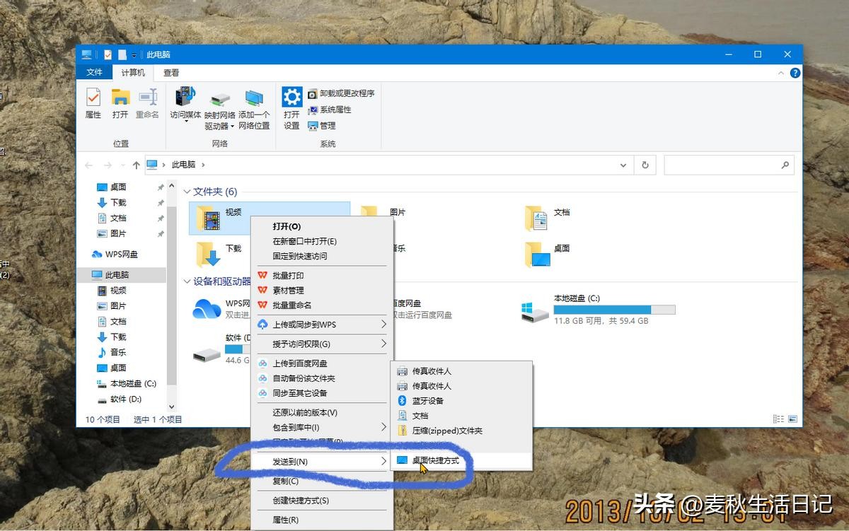直接拖动视频文件夹至桌面也可创建视频的桌面快捷方式。