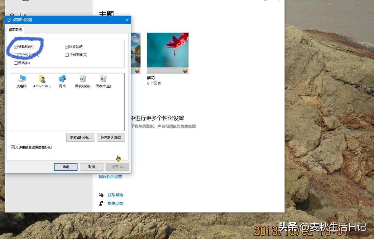 创建系统图标:进入电脑”设置“→”个性化“→”主题“→”桌面图标设置“→勾选需要的图标。