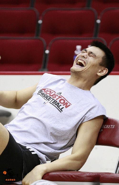 我真的很喜欢姚明的表情,每当看姚明这些图片,我就会忍俊不禁,我想有很多球迷和我一样,很喜欢姚明那种亲切感很强的笑吧!
