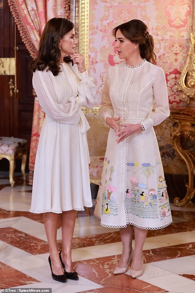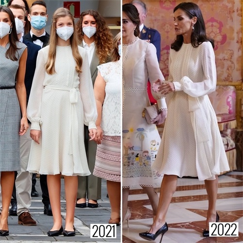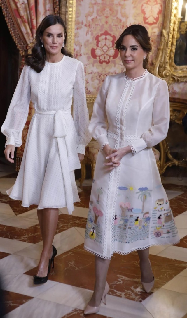 事实上,莱蒂齐亚的这条裙子也挺“年轻”的,因为这是一条来自小女儿衣橱中的服装。