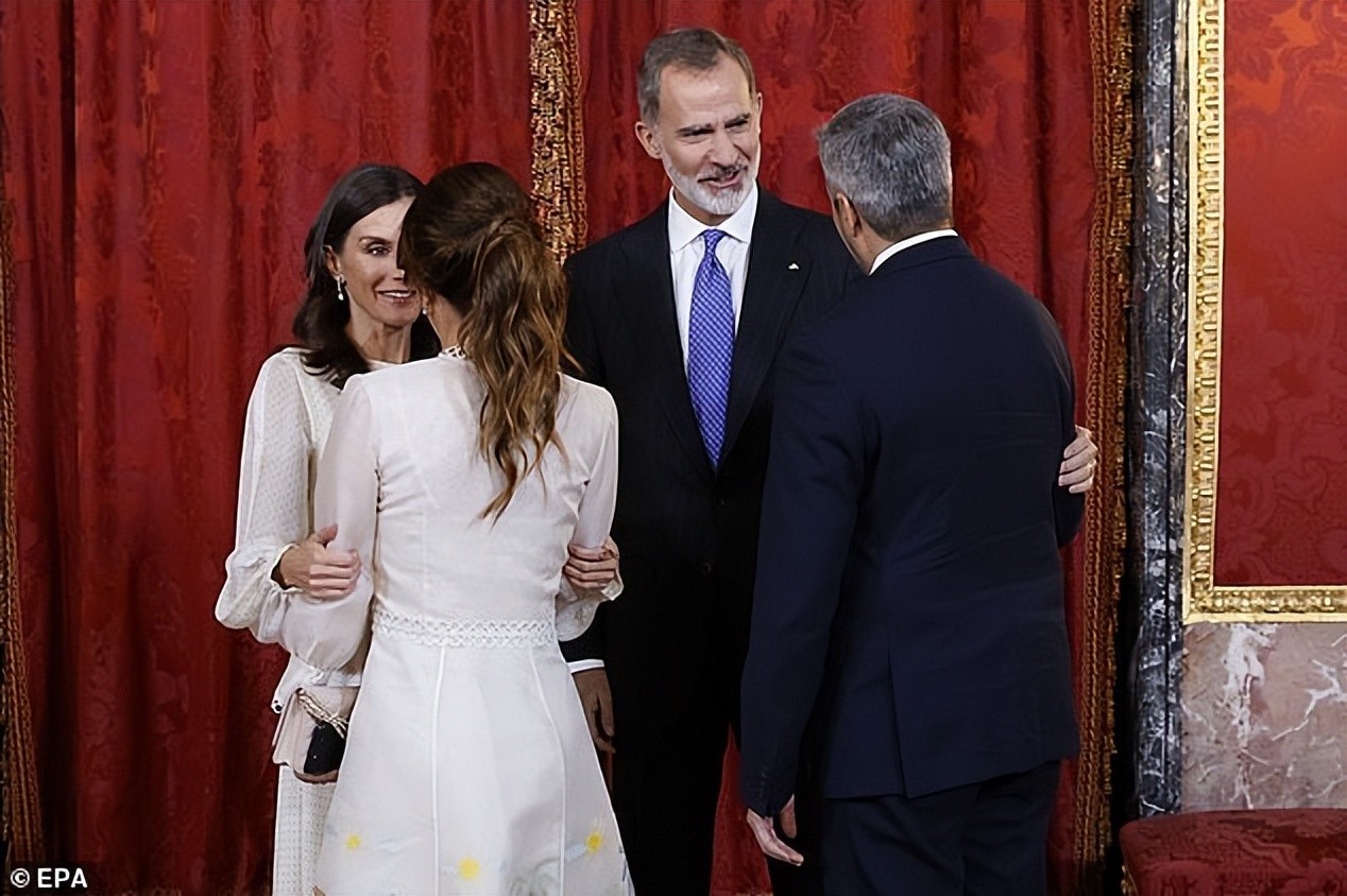 莱蒂齐亚是以苗条健美闻名的,说白了,就是“精瘦”,相比较而言,西尔瓦娜就要丰腴一些了,无论是脸庞还是体型,都有点儿肉嘟嘟的,从侧影看,两位女士的身形对比很是明显。