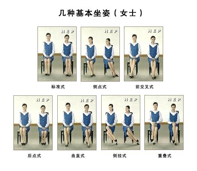 基本的坐姿是:双手轻放于腿上,双脚并拢放好。